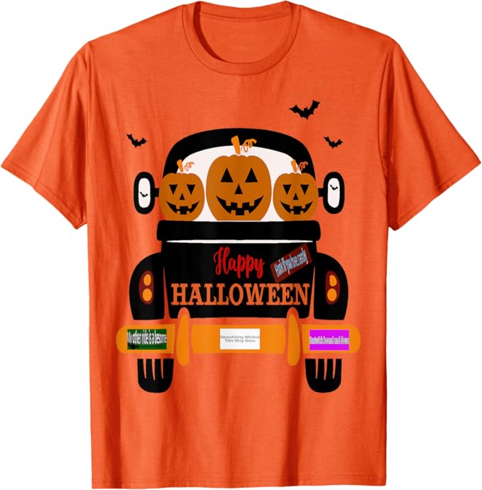 Happy Halloween trucking along with your creeps. Eastwick bound, wicked this way goes. Jack-o’-lantern’s gone batty over candy indeed. Honk if your other ride’s a besome style steed.